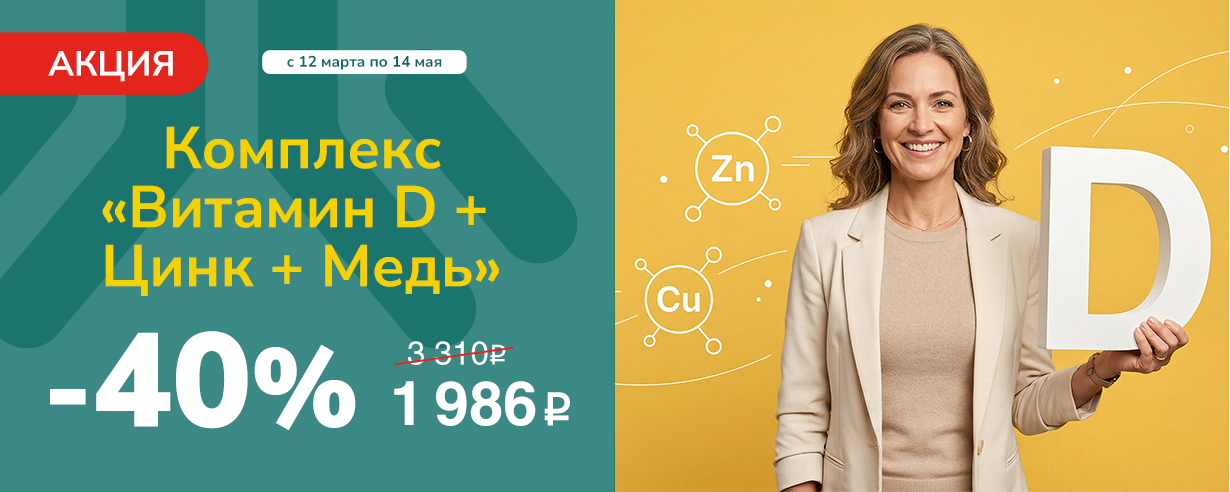Скидка распространяется только на лабораторные исследования и не суммируется с другими действующими скидками и акциями.